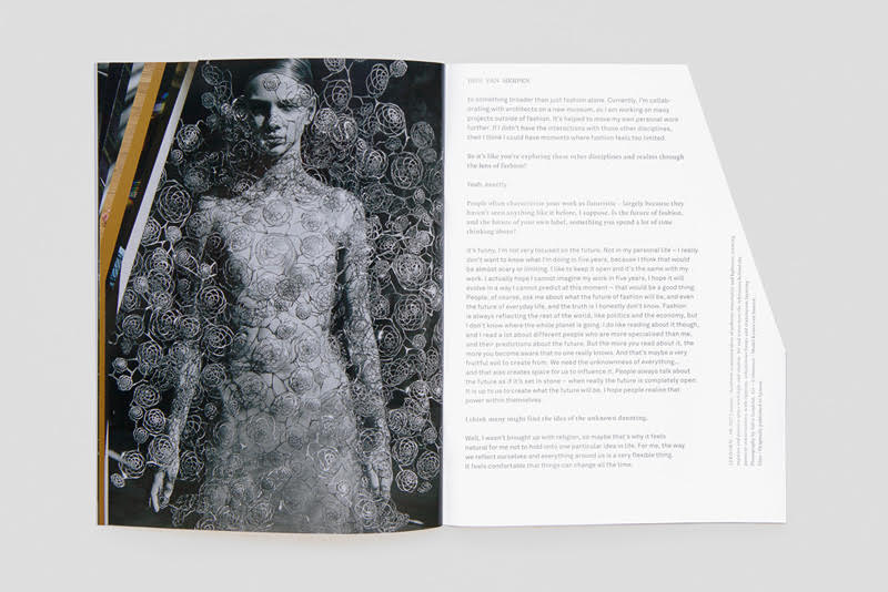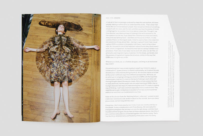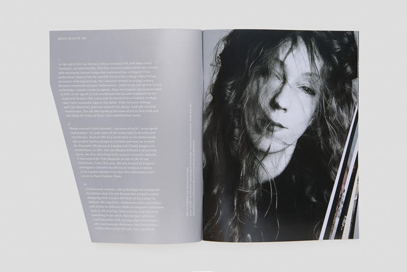 The issue presents a small retropsective of a decade of Iris van Herpen’s designs with images by some of the luminaries of contemporary fashion photography, including Inez & Vinoodh, Juergen Teller, Ellen von Unwerth, and Nick Knight. And since everything is related, we let ourselves be inspired by Iris’ multi-dimensional design practice, manipulating the very paper the issue is printed on, with each page cut away to reveal slivers of what is lying underneath.