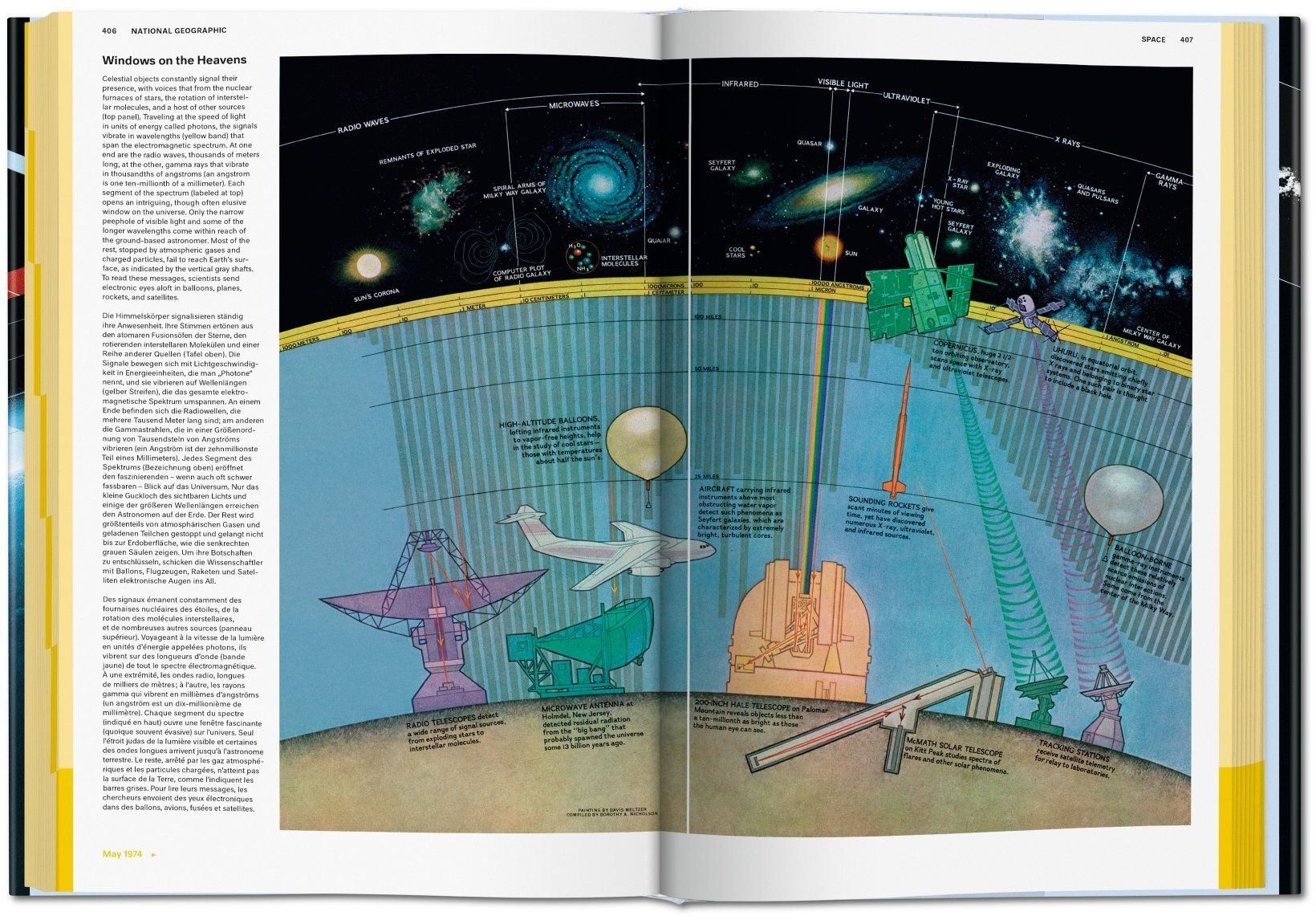 In this new anthology, TASCHEN and National Geographic gather the magazine’s best infographics of the past 128 years. Through seven sections—History, The Planet, Being Human, Animal World, World of Plants, Science & Technology, and Space—we encounter the rise and fall of the Roman Empire, the mysterious origins of the Easter Island statues, Cleopatra’s Alexandria, and the anatomy behind a cheetah’s extraordinary speed. We discover how our genetic patterns have been pieced together over the years and how birds make music; we get to grips with global warming and explore our ever-expanding study of an ever-expanding universe.