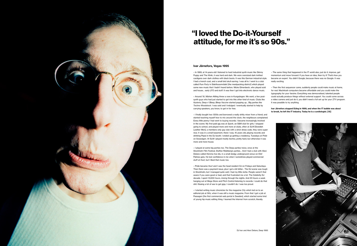 Stefan har tillsammans med klubbikonen Mikael Bohman [ZTV] sökt upp 108 av det tidiga 90-talets klubbprofiler, intervjuat samtliga och fotograferat dem på nytt. Materialet väver samman den kollektiva historien om Stockholms glömda 90-tal, berättad av de som var där.