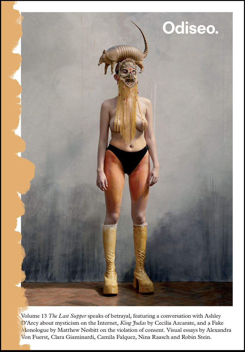 Odiseo Volume 13 The Last Supper was born from the unlucky number 13 – Judas, the disciple who betrayed Jesus, was the 13th to sit at the table. Born from this superstition, we look at how acts of treachery in many ways define the world we live in. Cheating, deceiving, cowardice – betrayal is almost entirely born out of trust, or love. Without one, the other does not exist. Revealing secrets, breaking a pact, a stab in the back, an act of revenge. We find shelter in the shadow of disloyalty; a thrill in the fear of discovery.
