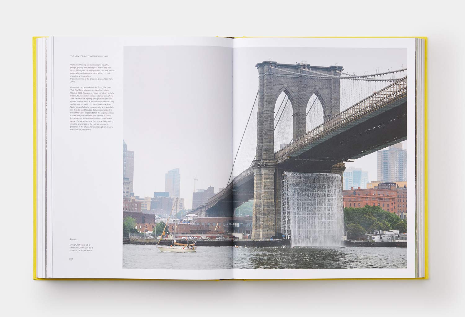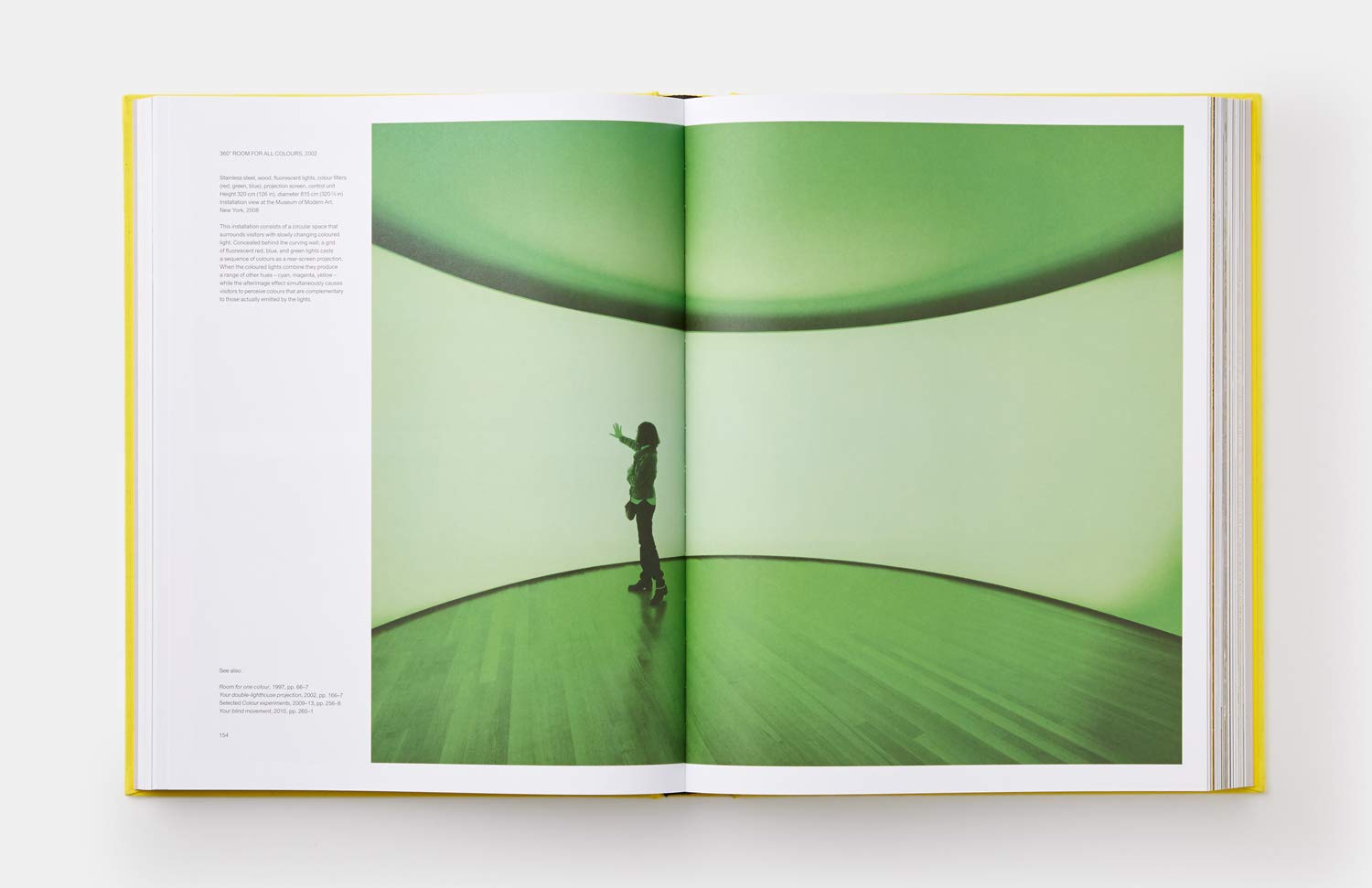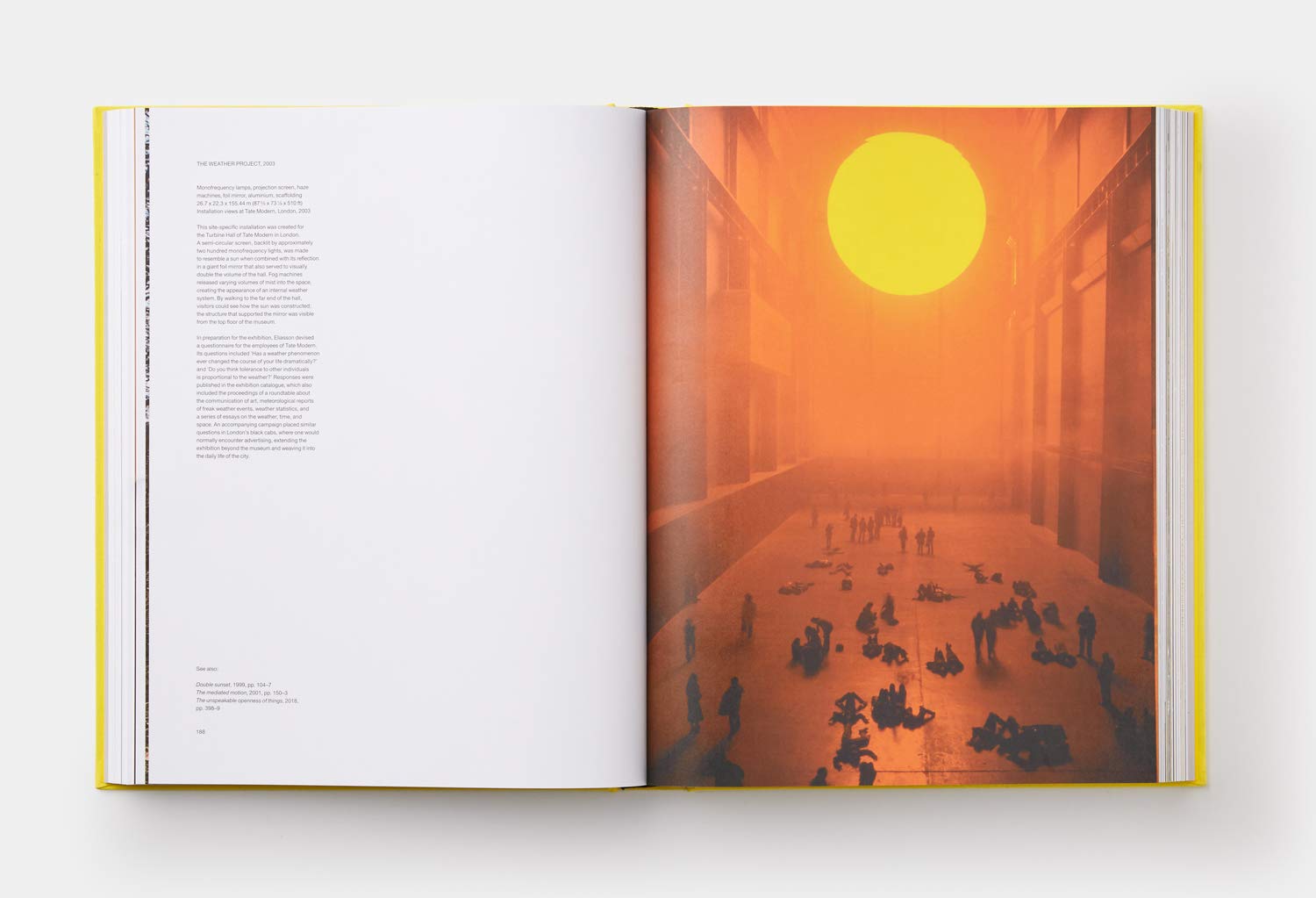 Experience spans Eliasson’s career to date via images of his installations, sculptures, paintings, photographs, films, architectural projects, and interventions in public space – each with an extended caption to guide readers through the work