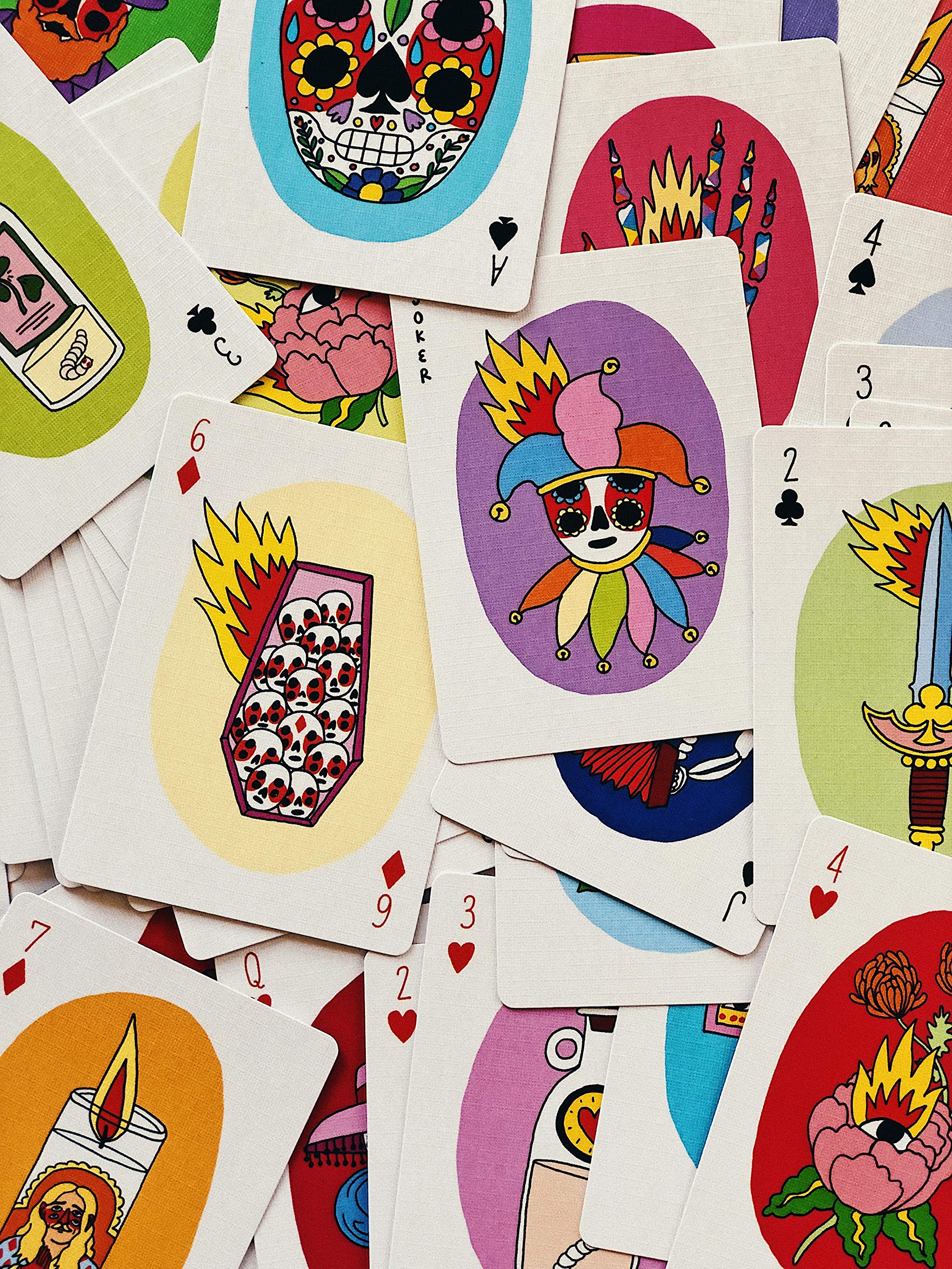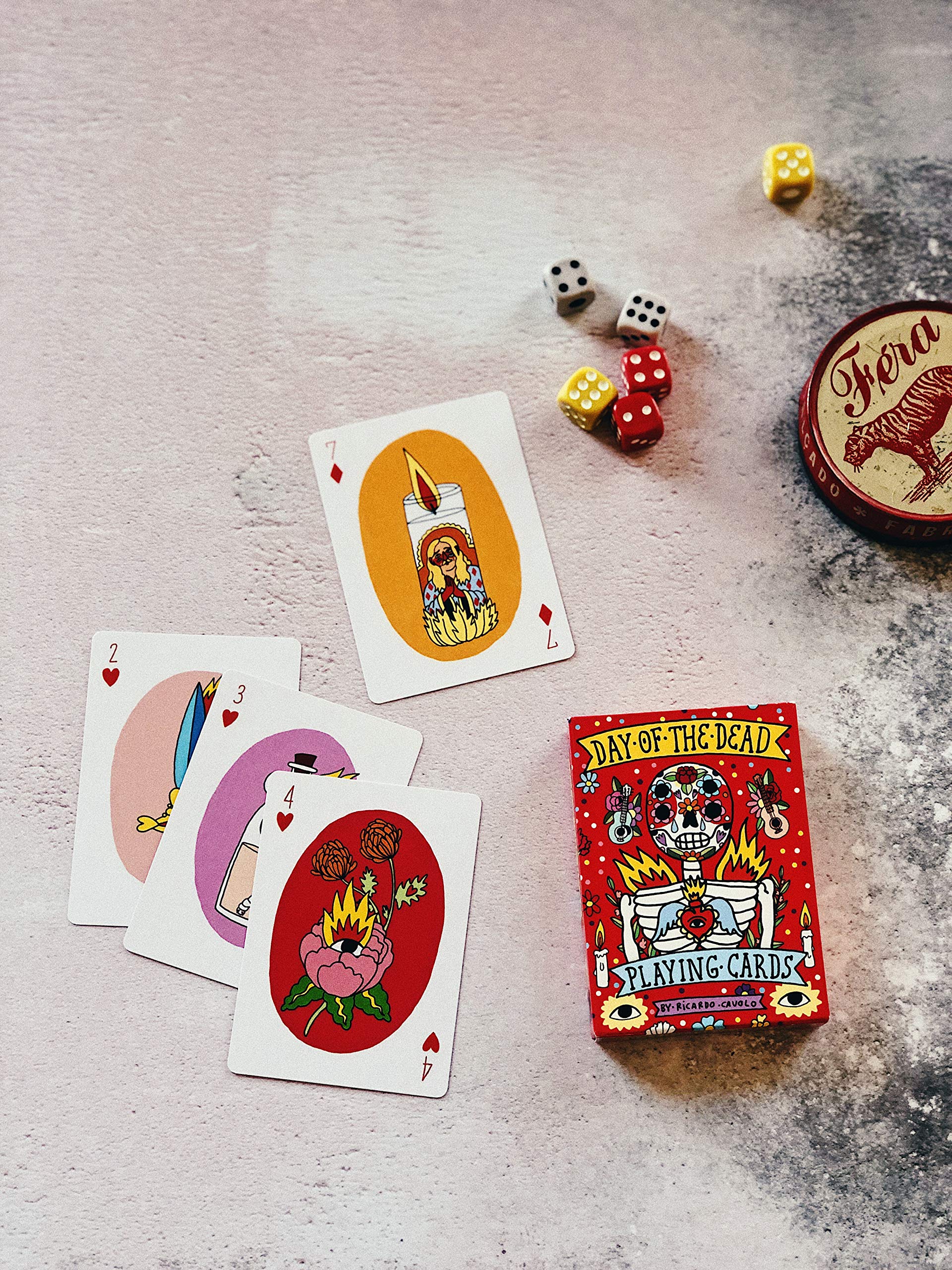 Introduce a macabre yet groovy edge to your next card game with these 54 playing cards featuring the bright, quirky and eye-catching illustrations of Ricardo Cavolo. Day of the Dead imagery is increasingly popular outside of Mexico. Swap your poker face for a smiling skull!