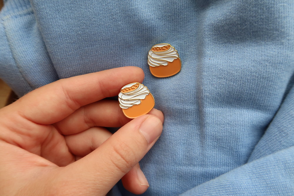 Semla is a small bun with cream, adored by all Swedes. Eating semla before Fettisdagen (or Mardi Gras) is a Swedish tradition. Buying this semla pin is the best way to prepare yourself for this tasty holiday!