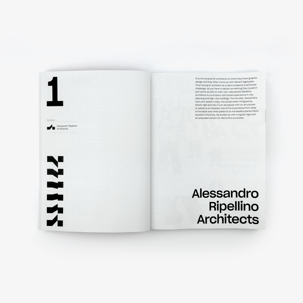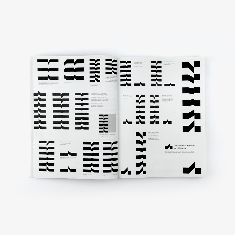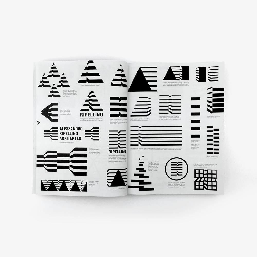12 projects are presented with nearly 1500 individual sketches with attached annotations showing the actual thought process present in the creation. The book includes marks for a range of companies within the realm of art, music and fashion including Hasselblad Foundation and Fotografiska.