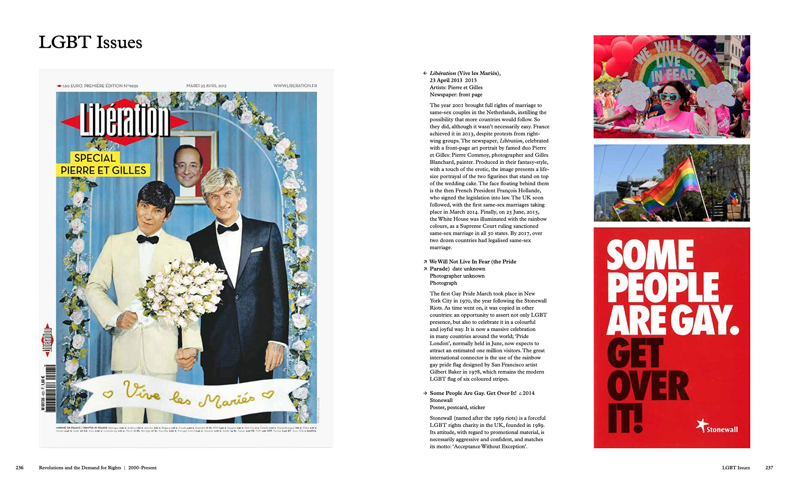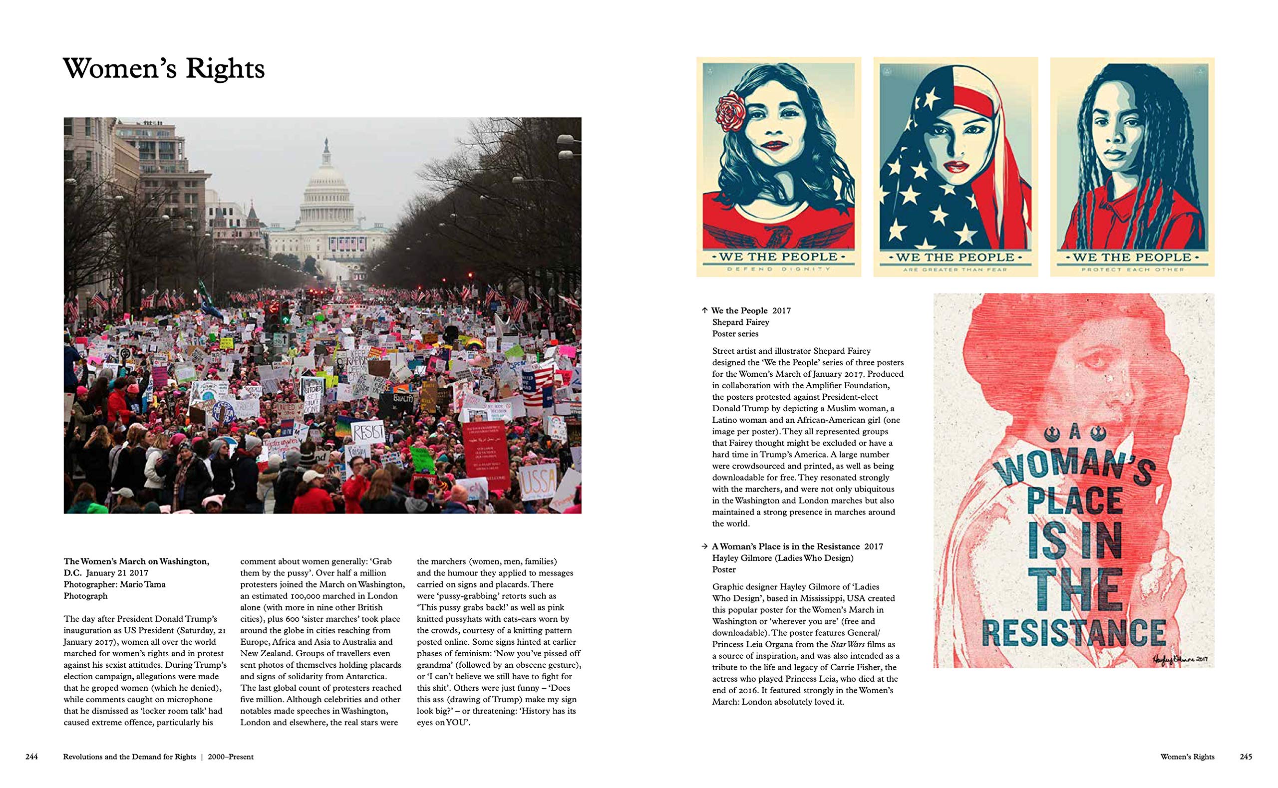 The book begins in the 16th century with the Reformation, when images could be produced in multiples. It then travels through decades and centuries of graphics: protesting against the miseries of war; satirising the foibles of royalty, politicians, religions, and society in general; calling for an end to racial discrimination and apartheid; demanding freedom from tyranny and dictatorships; struggling for LGBTQ+ rights; and, finally, attending to 21st-century concerns and Trumpisms. Each chronological chapter opens with a short introduction offering historical and artistic context to the period, followed by a copious and wide-ranging display of powerful protest graphics, grouped together by event or movement.