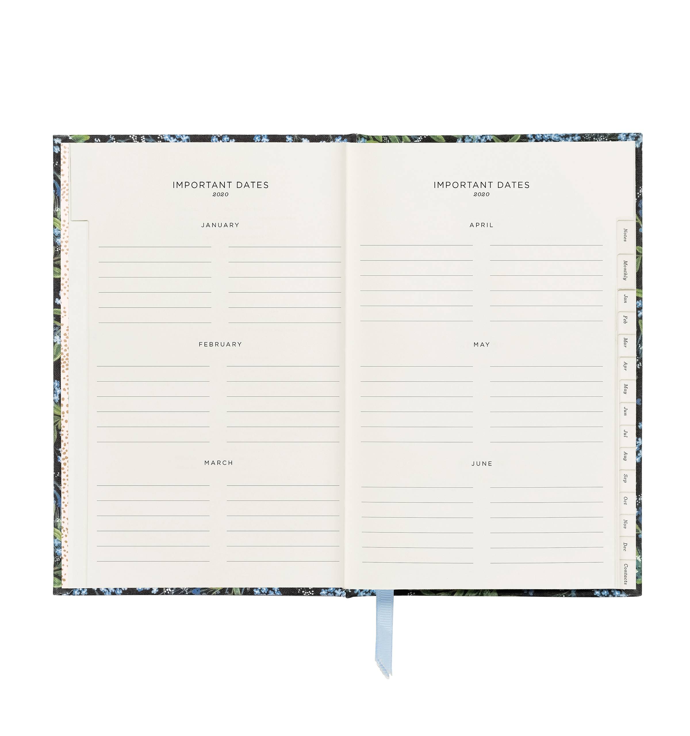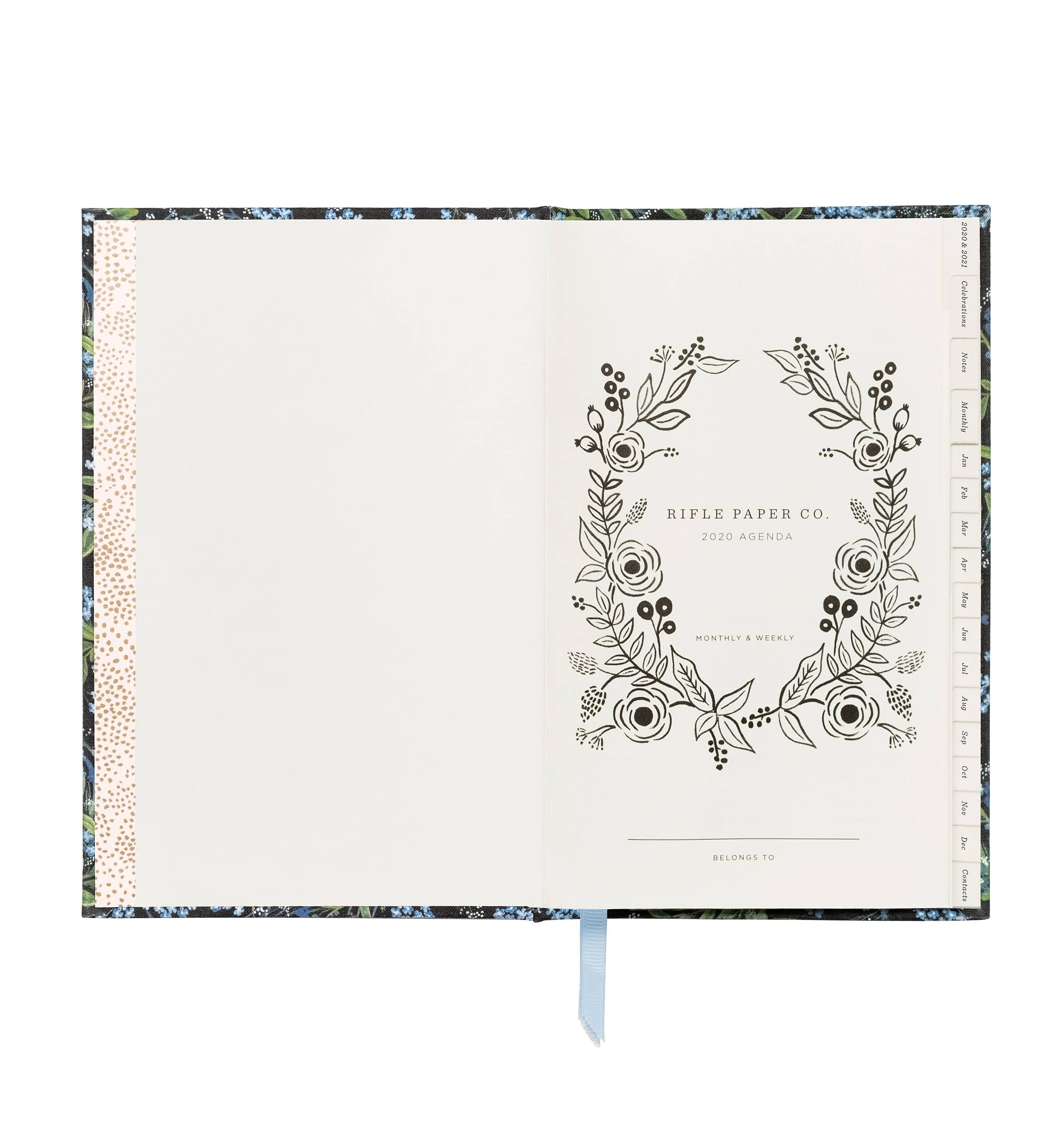 Organization becomes elegant with our beautifully bound 2020 hardcover agenda, featuring a cover printed on soft book cloth with gold foil details.