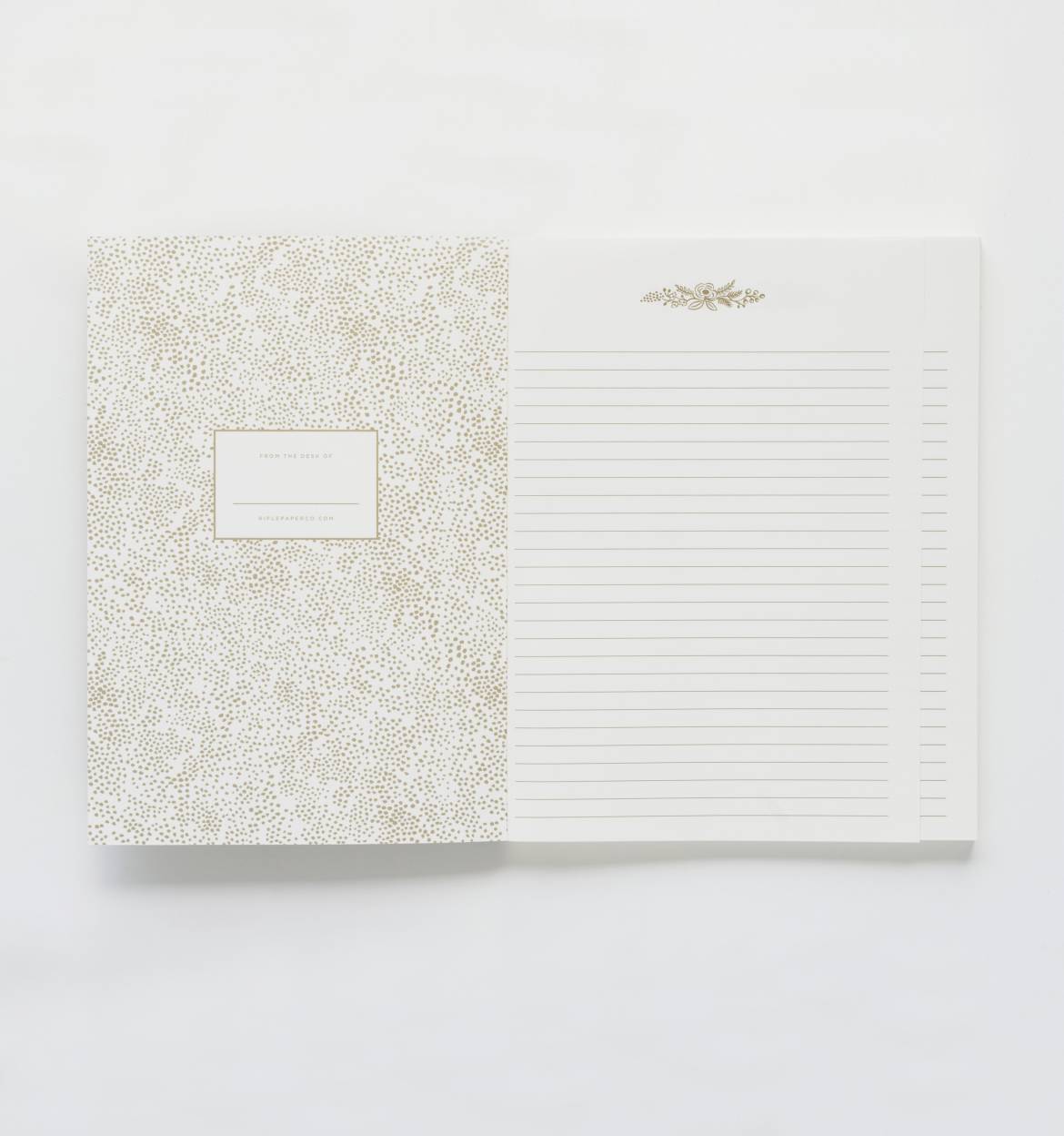 This journal features a soft linen cover with hand-painted florals and smyth sewn binding for durability. The interior pages are printed with metallic gold lines and accents. Rifle Paper Co. strongly believe life’s personal stories and moments are best told through the gift of a handwritten card or note, and hope that their beautiful goods inspire […]