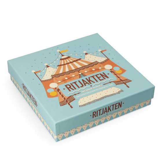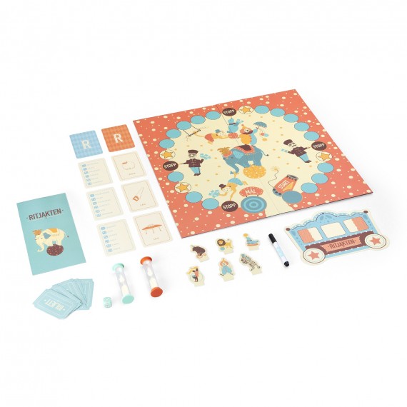 Välkommen till Ritjakten – det första rita-och-gissa-spelet där alla i familjen kan spela ihop, oavsett ålder. Dra ett kort, läs vad som står, och börja rita – dina motspelare tävlar nu alla om att först gissa rätt innan tiden är ute. För den som inte lärt sig läsa än finns specialgjorda kort med både ord och bild att rita av. Dessutom får de minsta ett eget timglas som ger lite extra tid jämfört med dom äldre spelarnas timglas. Kort sagt – kan du rita en huvudfoting kan du vinna Ritjakten!