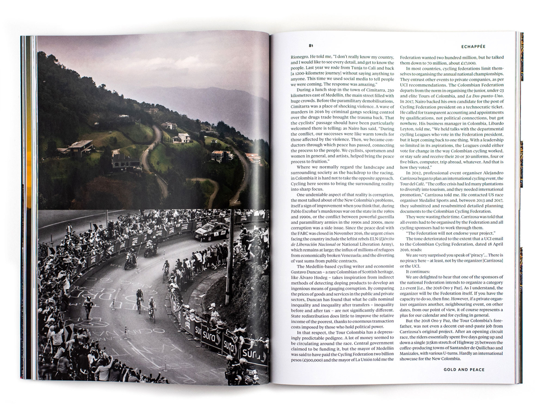 Matt Rendell explores the transforming nation behind the Tour Colombia; there’s the story of Gios’ orange years and part two of our pro cycling concussion discussion. Plus Pedro Horrillo on his life-transforming Giro crash, Desire, Boulting, Bardet, York and more…