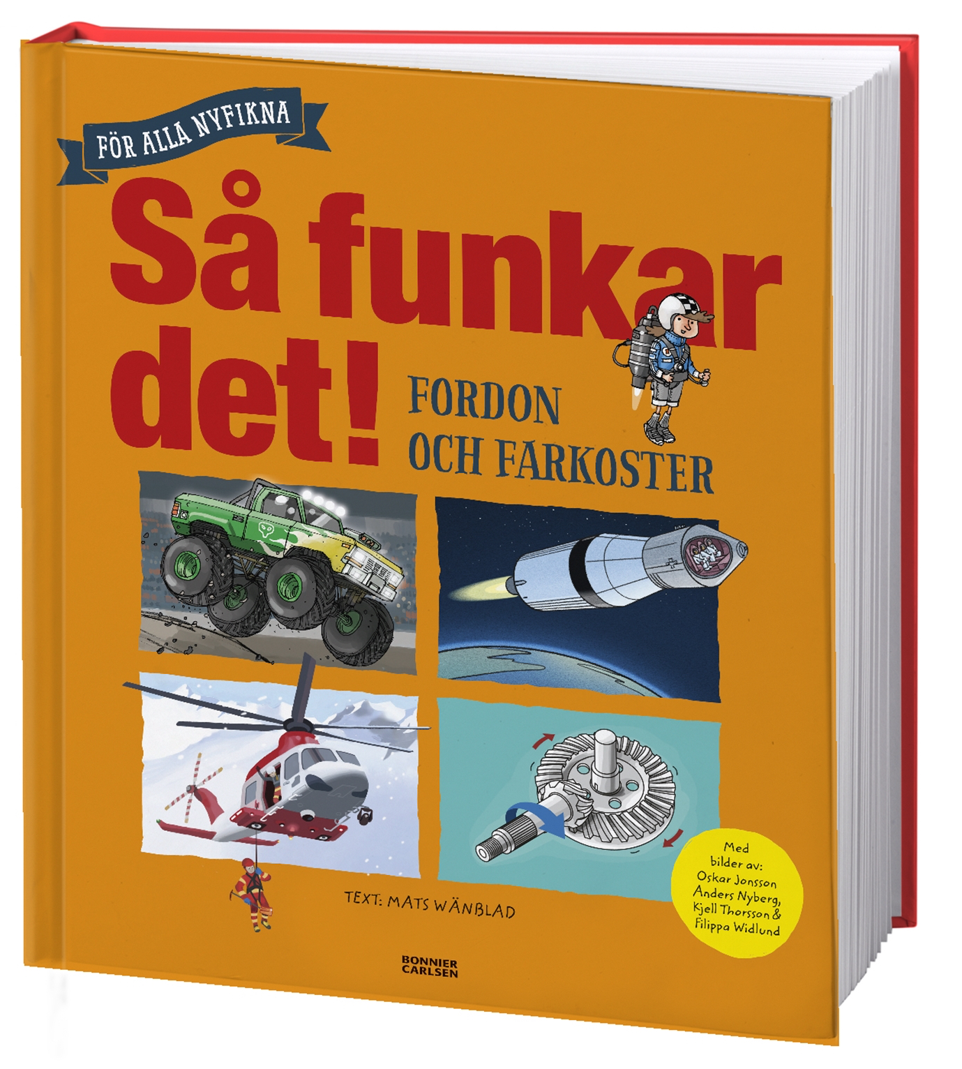 Fordonsfakta för nyfikna i alla åldrar – som lär dig om fordon på ett nytt sätt! Finns det likheter mellan ett snabbt tåg och en snabb cykel? Vad har fordon i extrema miljöer gemensamt? Många frågor får svar. Läs om den tekniska utvecklingen, om miljötänk och framtidens fordon och lär dig bygga din egen lådbil. Här finns rymdfarkoster, helikoptrar, ubåtar, snöskotrar, traktorer, monstertruckar och mycket mer. Dessutom kan du frossa i knasiga och spännande fakta i denna praktutgåva med massor av snygga och förklarande bilder.