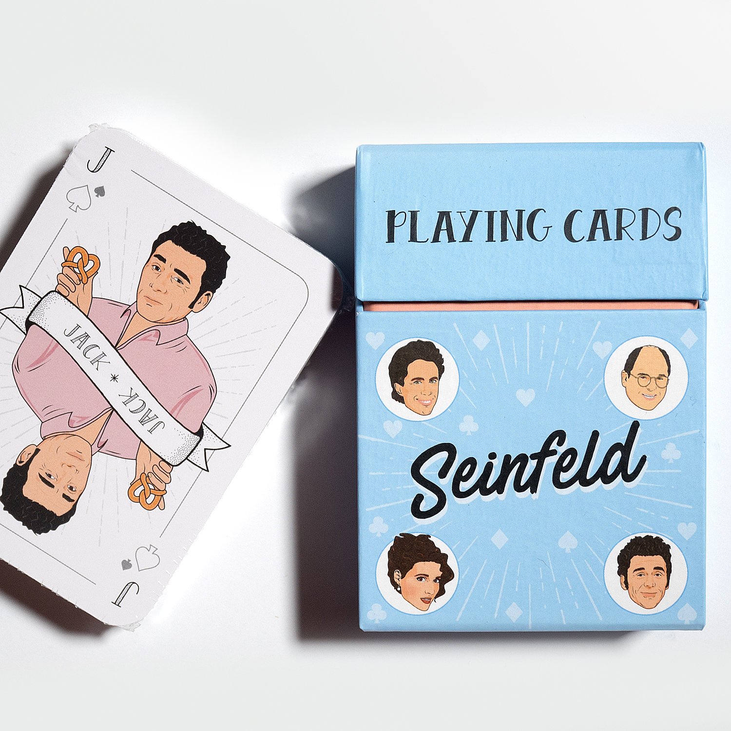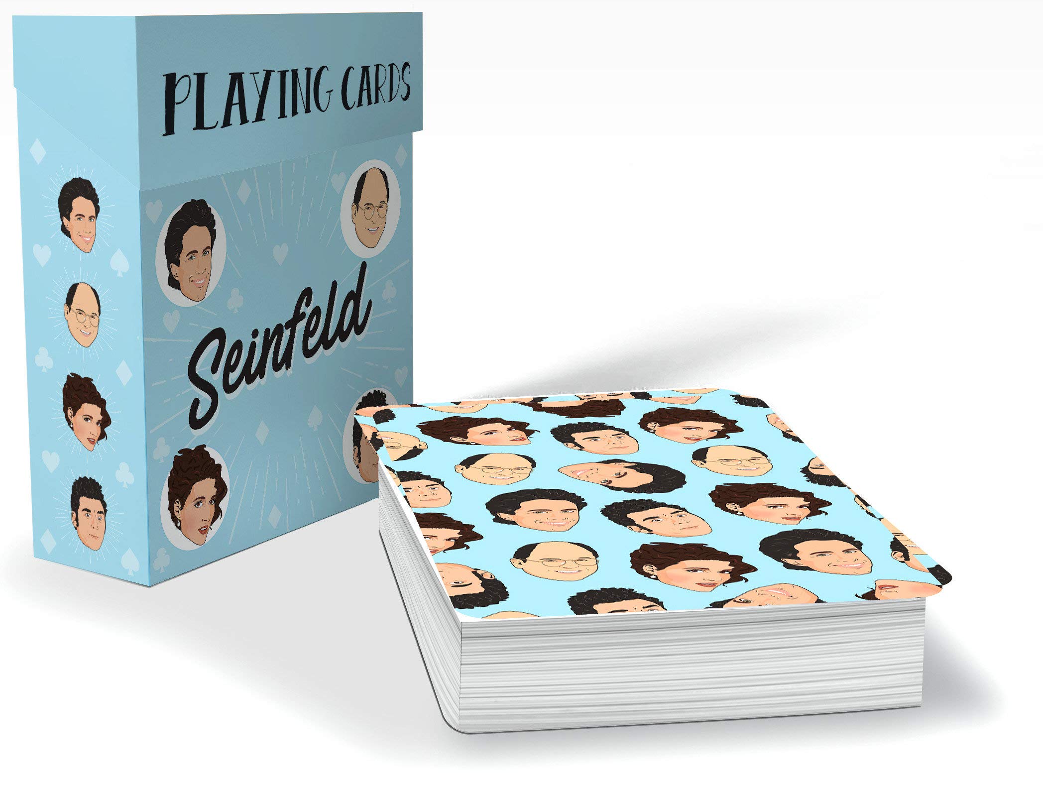 This deck of playing cards feature the faces of television’s most beloved – the characters of Seinfeld. You might be asking yourself (with that very particular inflection), what’s the deal with playing cards? Well, if you must know, they originated in China during the Tang dynasty around the ninth century. Now we use them to play fun games with friends, to gamble away our livelihoods and to confuse young children with illusions. And now, at long last, we have Seinfeld playing cards printed on high quality material.