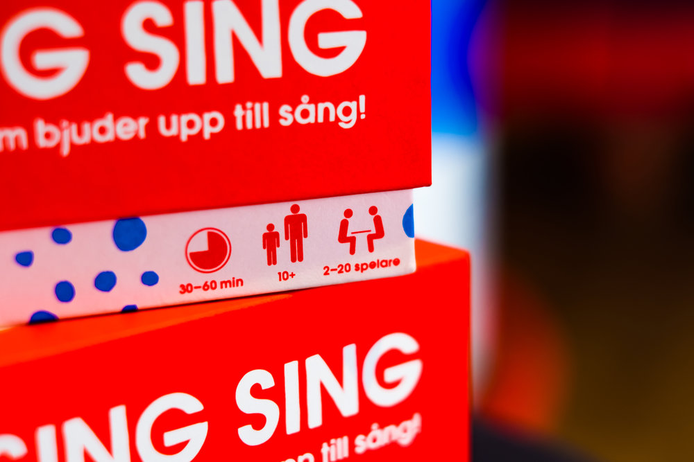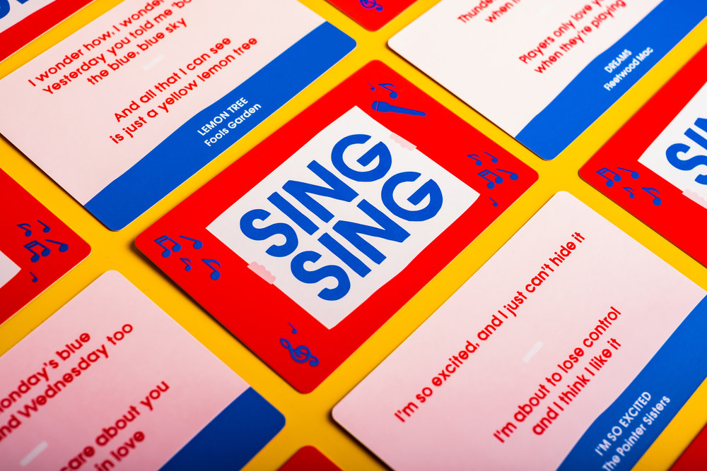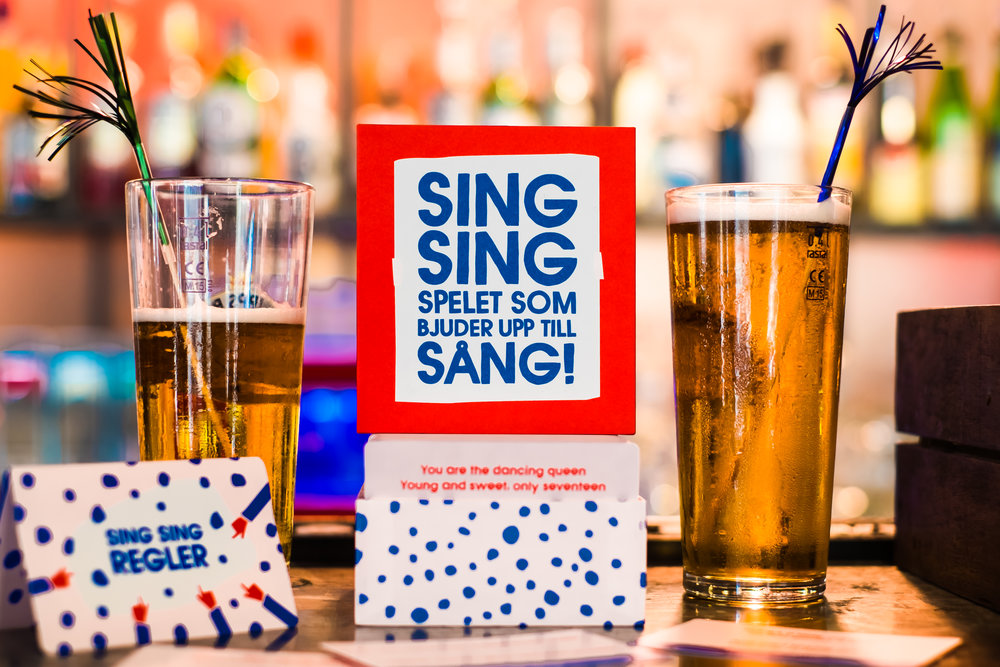Sing Sing – “Spelet som bjuder upp till sång”. Festspelet som tar 30 sekunder att lära sig och som uppmuntrar till allsång. Man behöver inte kunna sjunga, det blir roligt ändå. Spelets sånger är utvalda utifrån omfattande data om vad folk älskar att sjunga från karaokebaren Sing Sing.