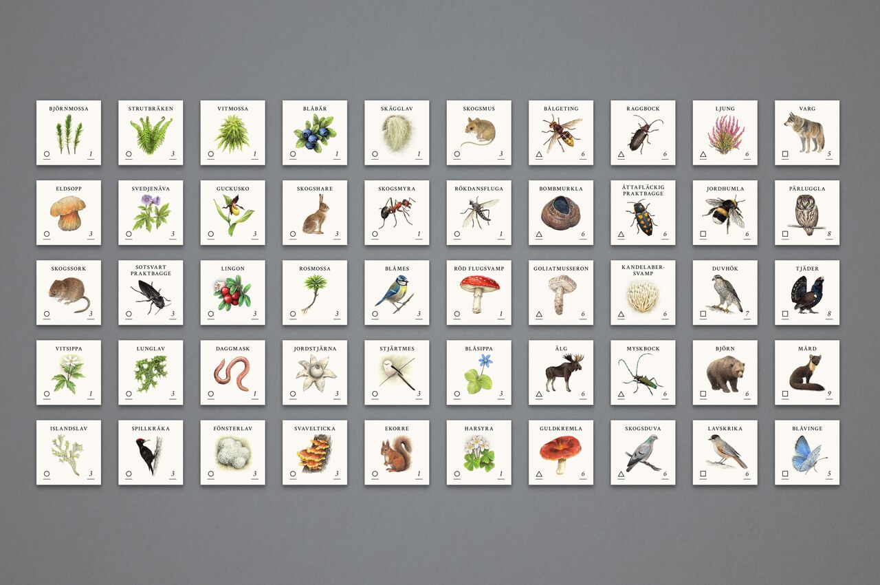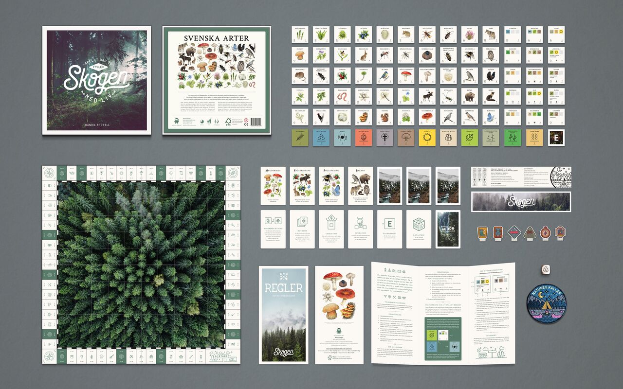 Den svenska skogen är full av vackra växter, spännande djur och märkliga svampar. Men för att arterna ska leva och frodas måste du skapa den rätta livsmiljön. I det ambitiösa familjespelet Skogen, utvecklat under många år av erfarne biologen Daniel Thorell, är det du som fyller skogen med liv genom att turas om att spela ut arter och naturelement. Det här spelet är en ögonöppnare för den mångfald av arter och miljöer som omringar oss (och vi lovar: en betydligt roligare sådan än den dammiga encyklopedin som hittas på farfars vind). Placera ut gamla träd, näringsrik mark och annat som får din dunge att blomstra – den som skapar den bästa skogen vinner. Eller rätt och slätt: som man sår får man skörda!