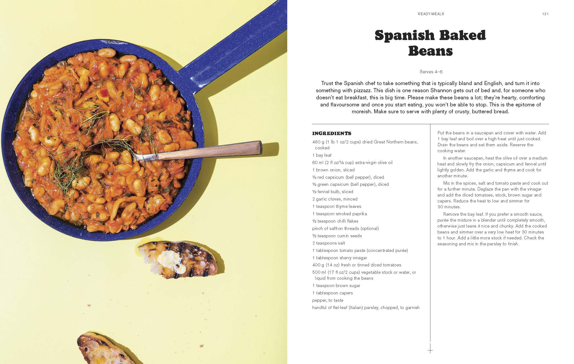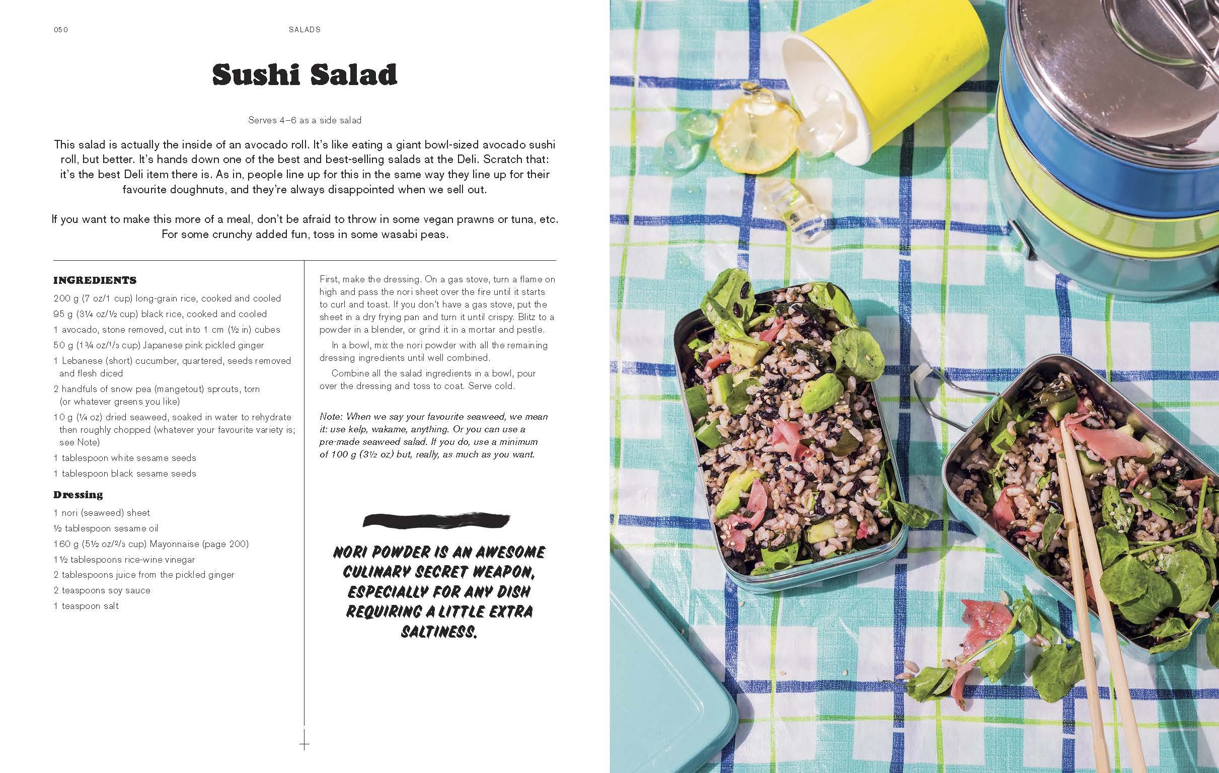 Across seven chapters, these pages help you skip the queue and go right to the good stuff: salads (including German potato salad; Beetroot, black lentil, yoghurt and dill salad, and Sushi salad), soups (Borscht; Corn congee; Smoky potato and leek; Split pea), baked treats (Banana split cake; Brownies, Lemon tart; Chocolate, mandarin and sour cherry pudding), dough both sweet and savoury (Sticky buns; Doughnuts; Dill pretzels), meals (Chilli, Mac and cheese , Kimchi fried rice; Cheesy broccoli and cauliflower pie; Carbonara) and basics (stock; rices; sides; sauces; dips).