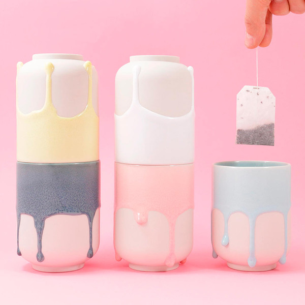 This hand-cast porcelain mug comes in 5 thick, running glaze colors. Based on the traditional Japanese yunomi tea mug shape, it is meant for everyday use.