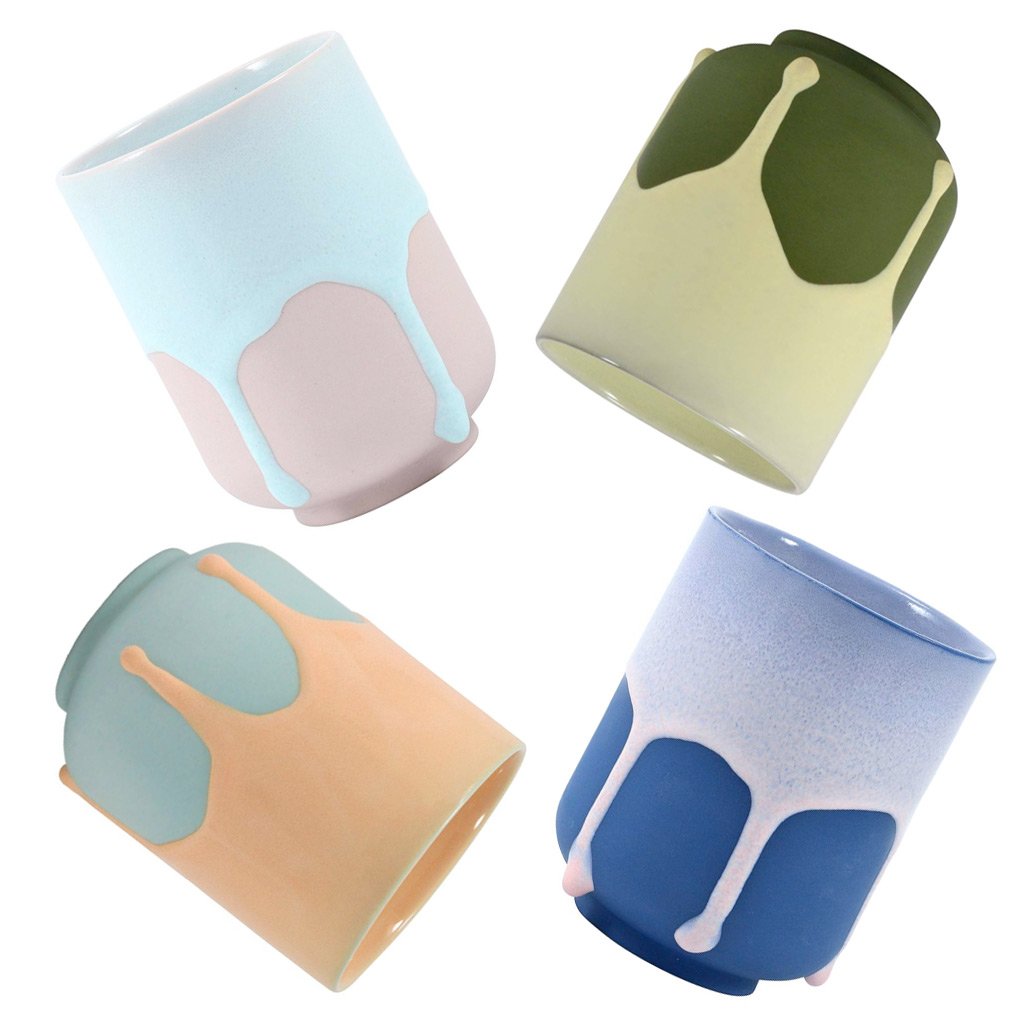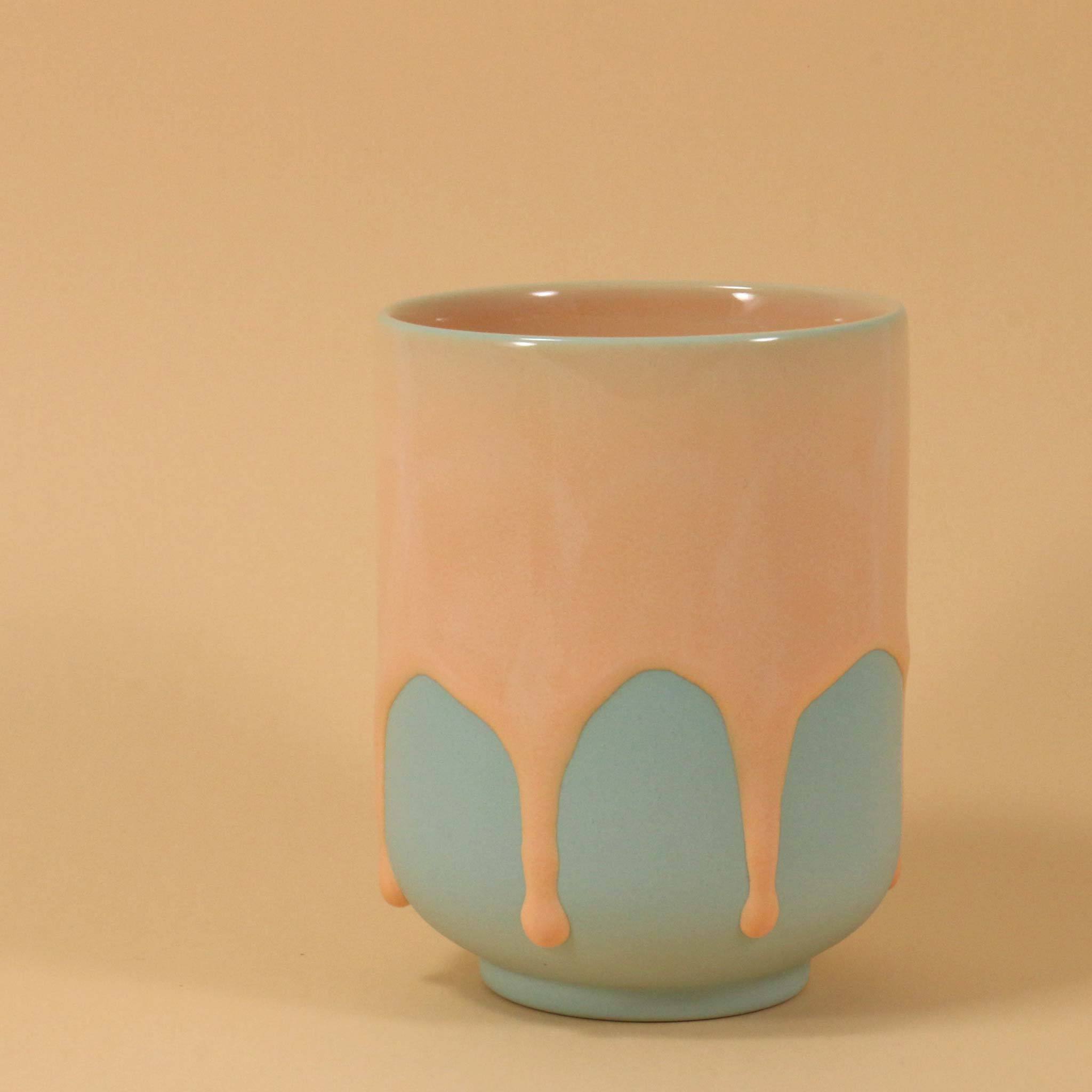 This hand-cast porcelain mug comes in 5 thick, running glaze colors. Based on the traditional Japanese yunomi tea mug shape, it is meant for everyday use.