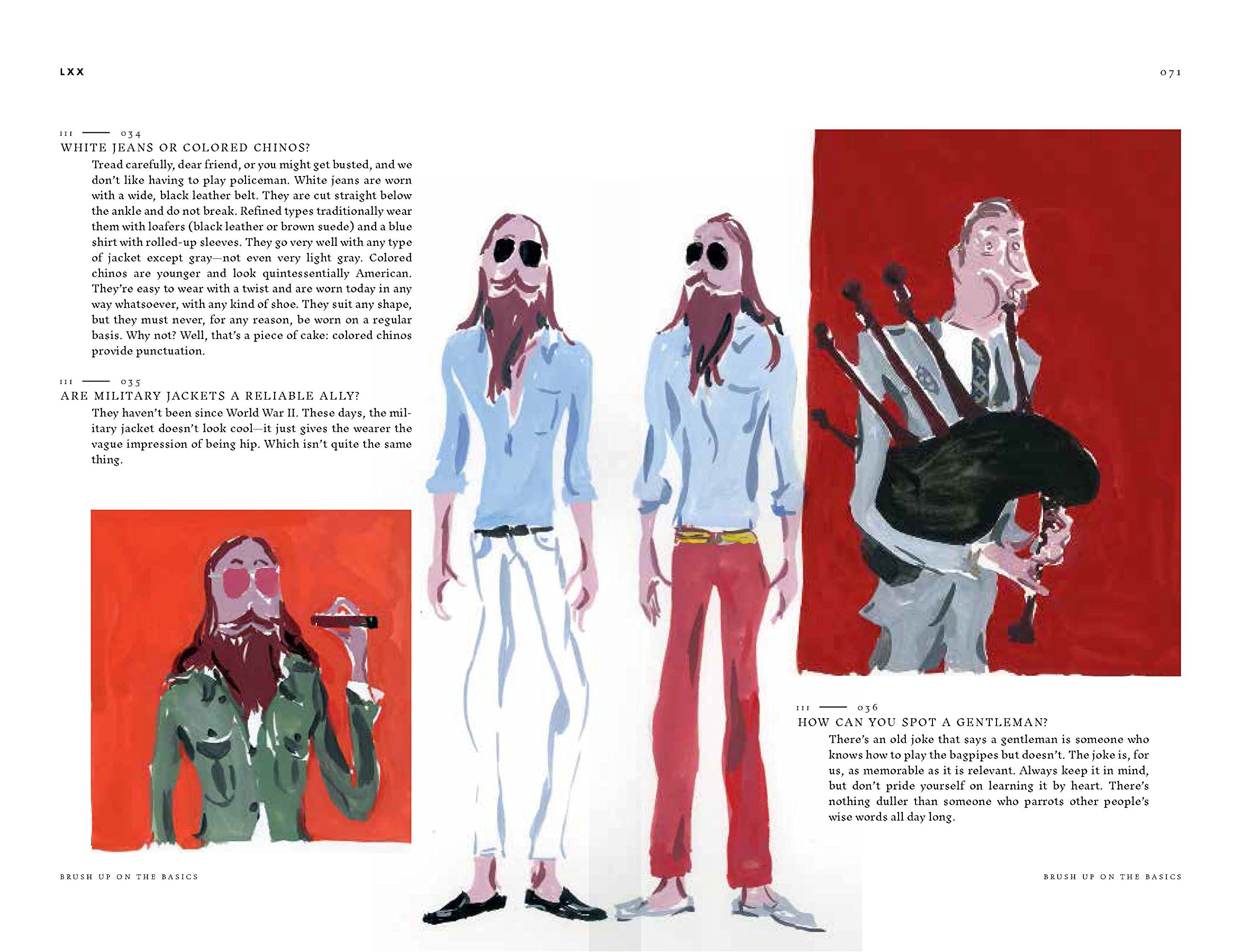 Two confirmed men’s style specialists have crafted a humorous guide for navigating the perilous waters of modern life. This style bible offers wry and witty advice for every situation imaginable and keys to understanding masculine style à la française . Men today are faced with myriad choices that reflect on their personal style, and it can be baffling to know what to do. What role should you take on at a barbecue?