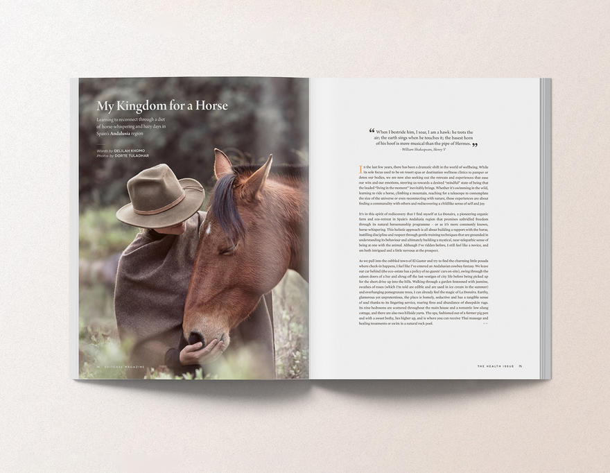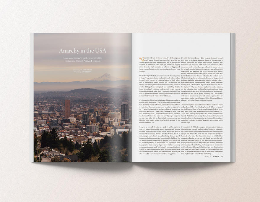 The Health Issue is our spring spin on the concept of wellbeing travel and swaps boot camp for forest bathing, collagen smoothies for craft beer and “wellness” for good health. Articles include a horse-whispering retreat in the Andalusian hills; Otegha Uwagba’s search for peace in the lesser-known Japanese prefecture of Nagano; a novice jogger’s experiences on a running retreat in Oaxaca; a hilarious Swiss spa review by Raven Smith; encounters with punk-rock farmers and creatives in Portland, Oregon; and other wellbeing-inspired journeys in Nepal, West Sweden, Puglia, Austria and the British countryside.