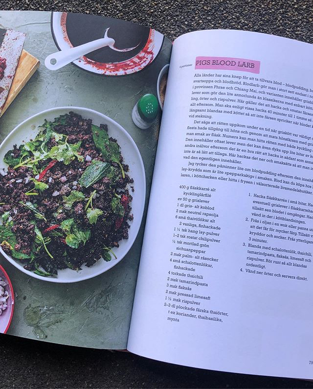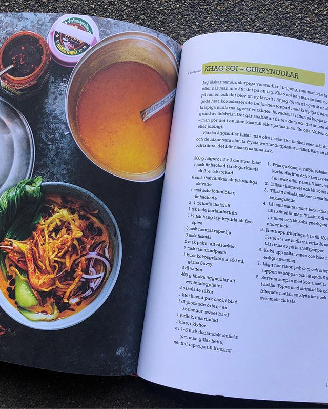Thai hemma består av ett 60-tal recept på smårätter, sallader, grytor, wok, grillat och lite sött. Larb, thaidumplings, kaffir lime lamm, thai chickpea fritters blandas med northern thai curry och kryddig massaman beef curry.