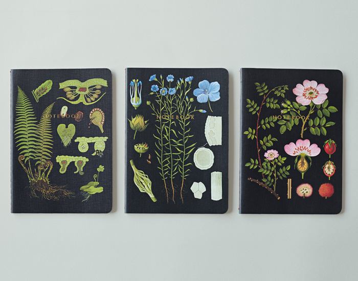 Showcasing the wonders of the natural world, this set of notebooks features botanical vintage cover illustrations. Includes foil stamping and bound in baker’s twine.