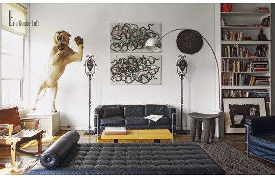 Like the living spaces of modernist designers and architects, these collage-like interiors are not dull, utilitarian residential units but true chambers of curiosities. The acquisition of rare, weird, and often exotic articles has less to do with money spent and more to do with the fantasy and life path of its occupant and creator.