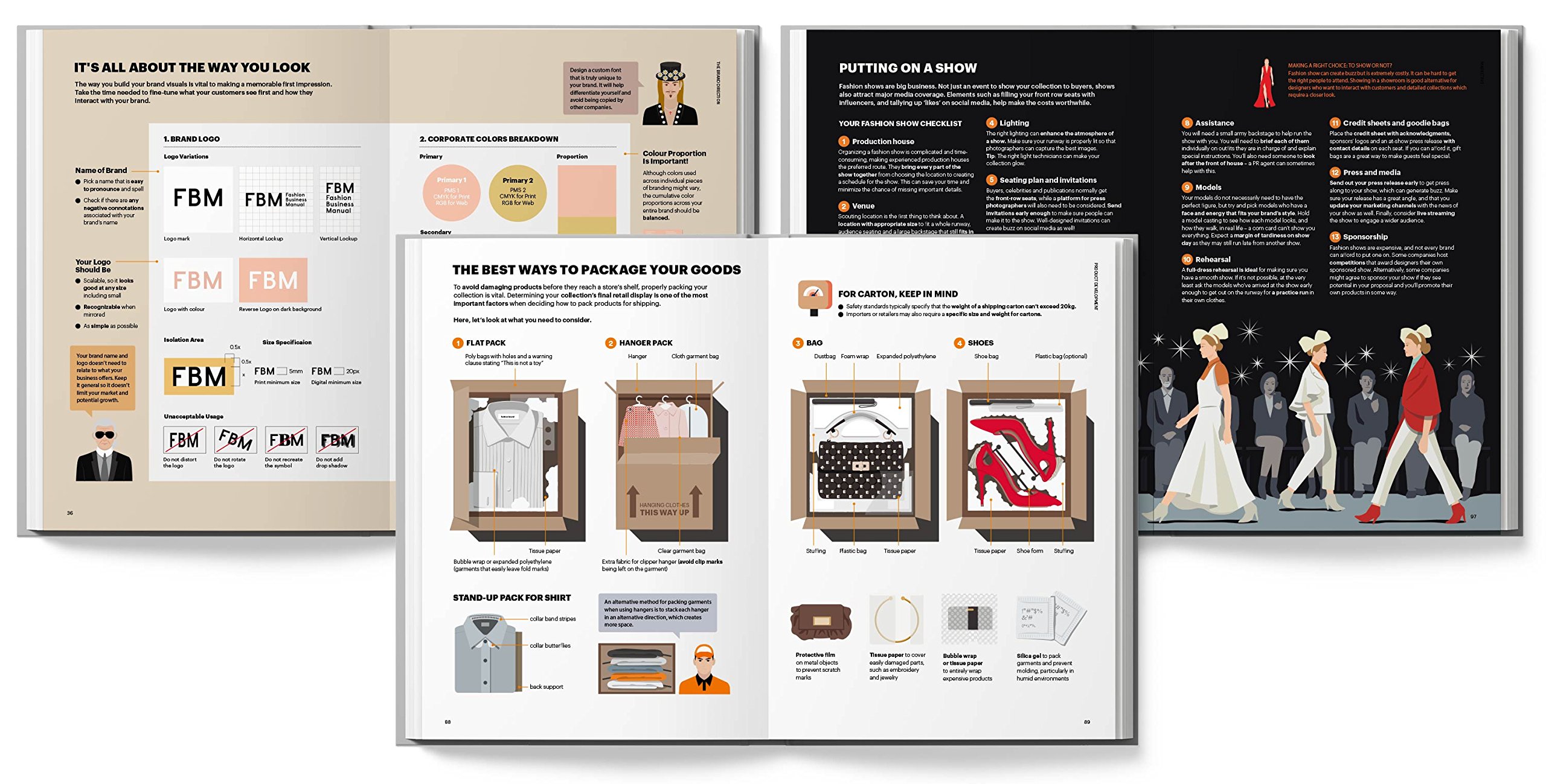 The Fashion Business Manual is the world’s first visual manual for fashion business. It covers business topics including branding, production, marketing and retailing in an easy to read, visual format. Unlike traditional business books which emphasize philosophy and theory, this book focuses on the practical business skill set needed to survive in the fashion world.