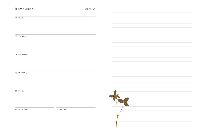 And, we also hope, those non-agenda-related things, such as something you have heard or read, doodles you make while chatting on the phone, hopes you have for the year to come, and maybe even momentoes you’ve pasted in from a lovely day out. But let’s not forget to try and keep some days totally free, for pure ‘me-time’. We know this isn’t always possible; daily life goes ‘get in the way’ after all! But, as we like to remind ourselves: If we keep running all the time, we’ll miss the beauty along the way. Good luck and enjoy!