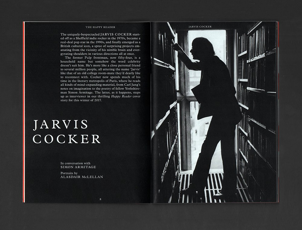 Former Pulp frontman JARVIS COCKER is a voracious bookworm and an ideal addition to the Happy Reader pantheon. In this winter issue he discusses his reading habits and literary foibles with the great poet SIMON ARMITAGE. Accompanied by glorious photographs by ALASDAIR McLELLAN, the chat covers everything from the stories of Carson McCullers to the dreams of Carl Jung.
