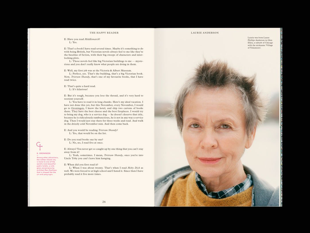 LAURIE ANDERSON became a household name in 1981, when her 8-minute avant-garde monologue ‘O Superman’ became the world’s strangest-ever hit single. Anderson, now 71, is an artist whose work encompasses whatever she needs it to, from performance to music, from CD-ROM to virtual reality. Interviewed in Denmark, she discusses the dizzying breadth of her reading habits, which underpin everything she does, her useful belief in multiple realities, and the old Kindle she carries from her late husband, LOU REED.
