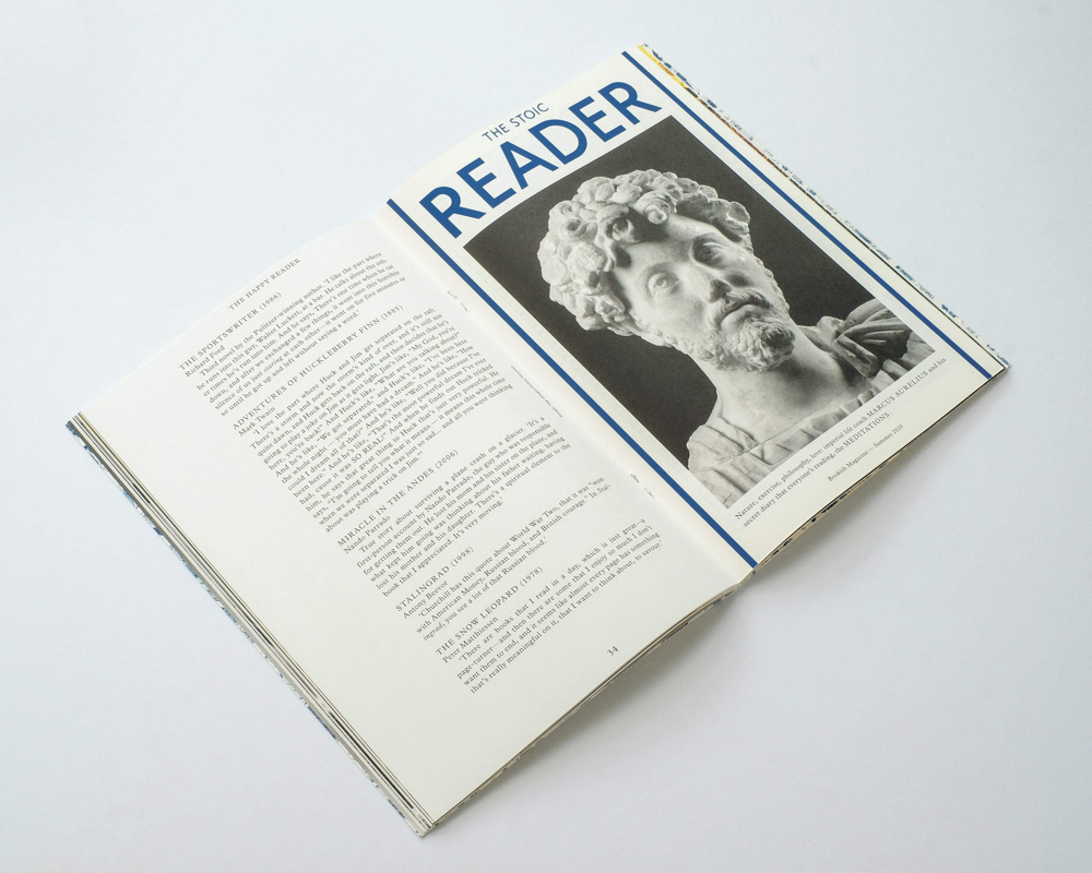 Our Book of the Season for summer is an eternal bestseller by the Stoic philosopher, imperial life coach and Roman emperor Marcus Aurelius. The book is his secret diary that everyone is reading, the Meditations. With contributions from writers including Geoff Dyer and Deborah Levy and the photographer Martin Parr, the second half of the magazine tells you all you may ever need to know about nature, exercise, philosophy and love.