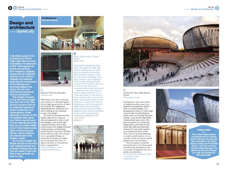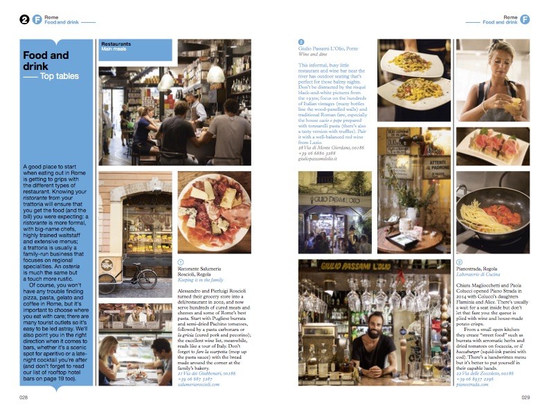 We’ve pushed past the charm of gingham tablecloths and raffia-covered wine bottles to find the innovative chefs making their mark on the food scene and the best spots for an authentic plate of cacio e pepe. The finest shops are handpicked here too, from centuriesold tailors to up-and-coming designers, and we’ll lead you through the bamboozling array of galleries, museums and architecture – even going underground at times – to reveal lesserknown gems. And then there are the colourful neighbourhoods that lie off the well-beaten path, the best rooftop venues for a late-night boogie and the places to head for an earlymorning run to work off all that pasta.