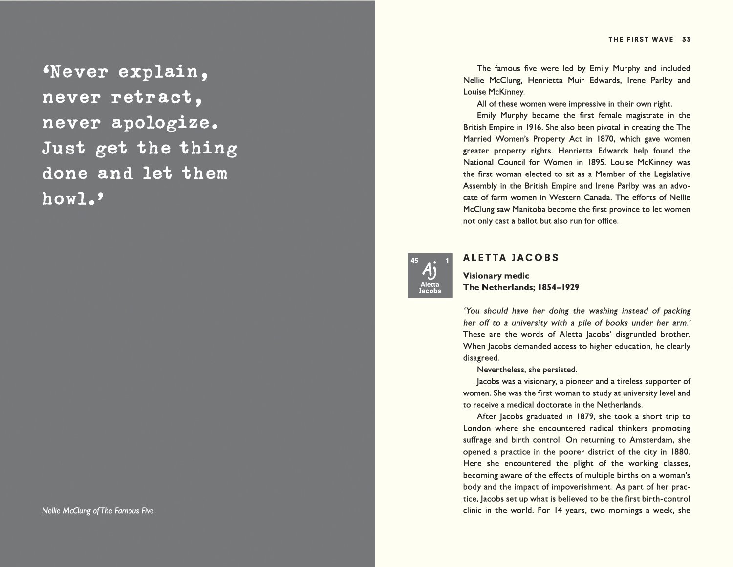With unique illustrations and pull-out quotes peppered throughout, this is an essential guide to Feminism and a place to turn to for courage and inspiration from history’s heroic women.