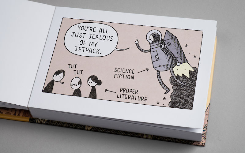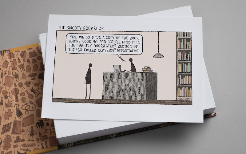 This postcard set celebrates more than a decade of Gauld’s contributions to the Guardian, with fifty of his most beloved strips, on everything from Samuel Beckett’s sitcom pitches (such as Waiting for Kramer, a show where two men await the arrival of a man named Kramer who never comes), ‘Procrastination for Creative Writers, a 10-Week Course’ and ‘Poetry Anthologies for People Who Don’t Like Poems’. Witty and beautifully drawn, The Snooty Bookshop will make you laugh at least fifty times, guaranteed.