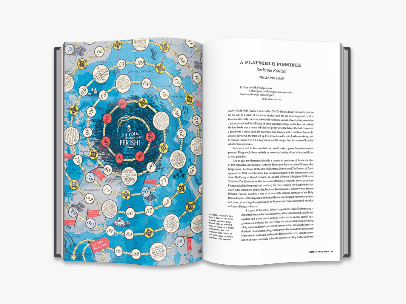 Philip Pullman recounts a map he drew for an early novel; Robert Macfarlane reflects on his cartophilia, set off by Treasure Island; Joanne Harris tells of her fascination with Norse maps of the universe; Daniel Reeve describes working on The Hobbit films; Miraphora Mina recalls creating ‘The Marauder’s Map’ for Harry Potter.And there’s much more besides.
