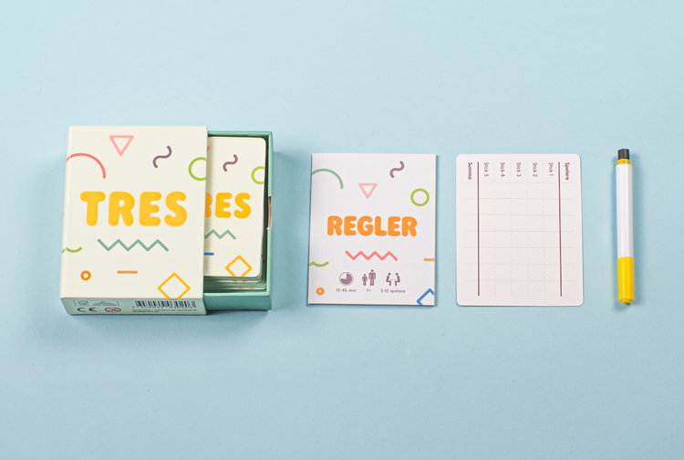 TRES är ett enkelt och roligt kortspel för alla åldrar. Man kan spela med familjen hemma eller i stugan, likväl som med kompisarna på festen eller resan.