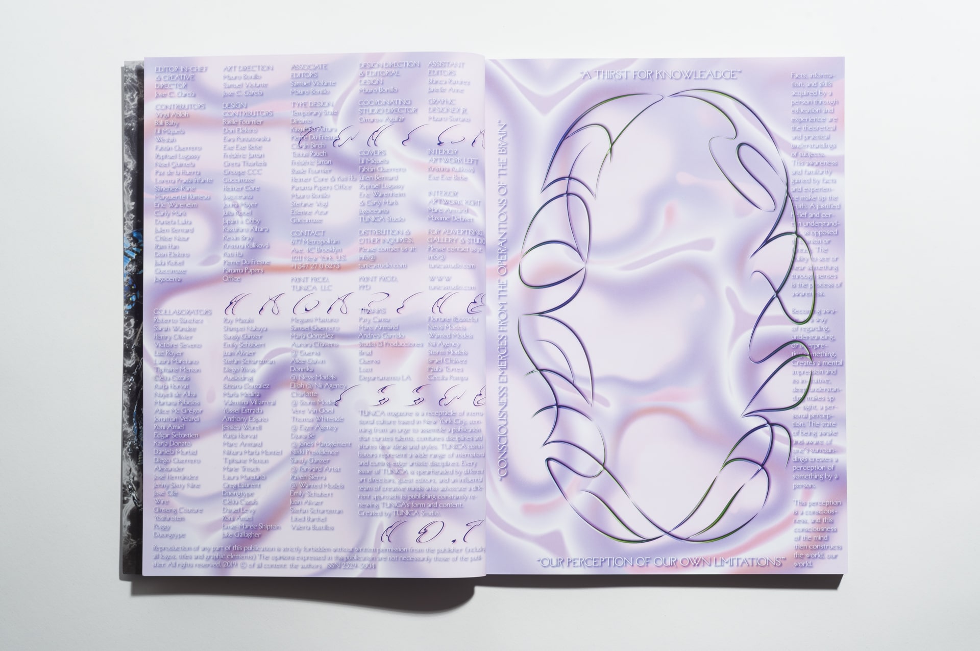 Tunica magazine is a receptacle of international culture based in New York, stemming from an urge to assemble a publication that curates talents, combines disciplines and shares new ideas and styles. Our contributors represent a wide range of artistic disciplines. The magazines dynamic content includes interviews, features, reportage, fiction, art, illustration, photography, and so on.