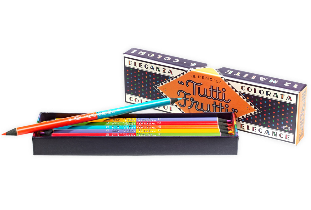Inspired by classic Italian packaging and stationery, celebrated designer Louise Fili brings her pencil collection into full color. This fun and stylish set, a companion to Fili’s Perfetto Pencils, contains twelve double-sided pencils in six tutti Frutti shades, ideal for drawing or writing.