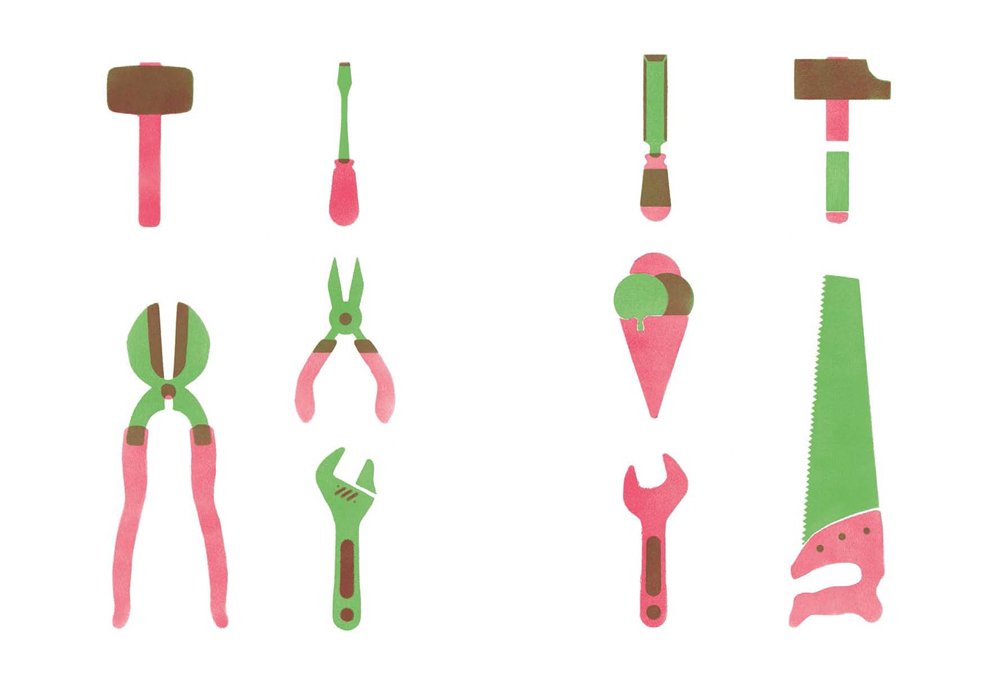 Readers will look for the odd one out on each spread of this stylish, 64-page picture book, packed with familiar objects, stunningly depicted in duotone. This play on the analogy of shapes makes the objects look deceitfully similar and the task surprisingly tricky! With a range of humorous visual jokes through association (an egg among birds) as well as clever shape comparisons (a plane among insects), this wordless book offers much to be discussed, and the joy of visual deciphering and categorization is sure to continue beyond its pages.