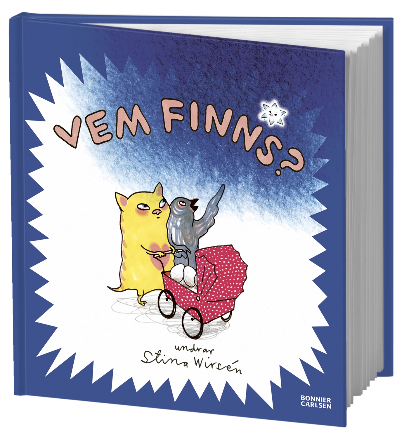 Stina Wirséns Vemböcker tar med imponerande enkelhet upp stora ämnen för stora och små på ett suveränt sätt. Här får vi möta det spralliga syskonparet Mjau och Pip, och deras funderingar kring ett syskon som aldrig kläcktes ur sitt ägg. Stina Wirséns älskade vemdjur har fått tillskott av en ny generation små, som skapar egna berättelser.