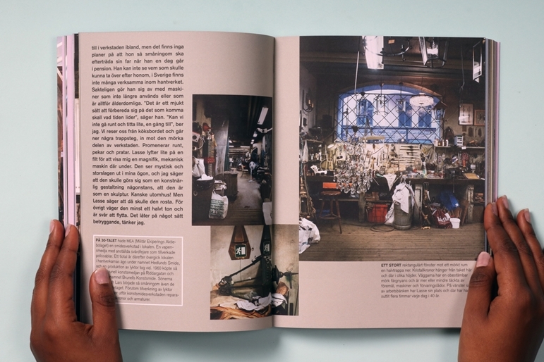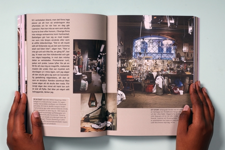 Cilla besöker också Norrbacka Tryckeri, Brunells Konstsmide, E. Pettersson Konstgjuteri och Dramatens dekorateljéer, och man blir lika betagen varje gång. De patinerade miljöerna skapar en atmosfär av historia, gediget kunnande och beredskap att praktiskt gripa sig an både större och mindre projekt. Flera av hantverkarna är så kallade mästare, med traditioner i den egna familjen flera generationer tillbaka.