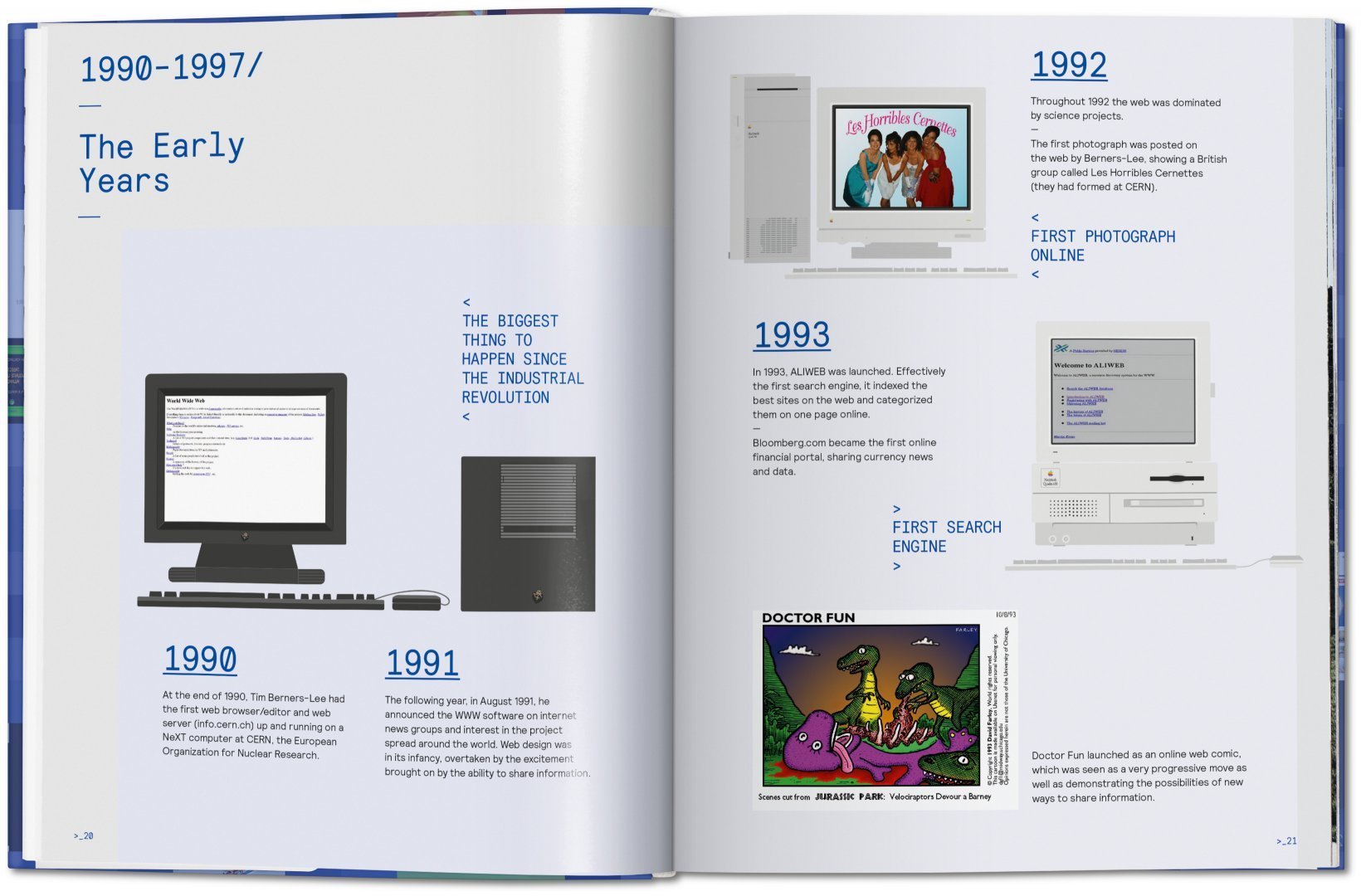 This comprehensive visual history gathers 21 chapters that detail, for every year since 1998, the best websites and examples of hardware used at the time, and explore how user experience, usability, and technological milestones have influenced the development of the internet we use today. Year-by-year factsheets and smart Google insights orient the reader through major developments across such categories as world news headlines, highest grossing films, new soft and hardware, greatest website traffic, and many more.