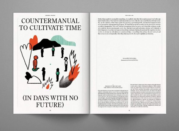 In this issue you will find: Instructions to cultivate time. Scores with no notes, no endings, no beginnings. Quests for silence, images of noise.Wake up calls. Buzzing clocks. Hissing muted under water. The universe’s journey from fire to ice, and then from ice to fire. Filling out forms, emptied forms. A buchla played by a woman with light sleep. The omnipresence of absence. Eloquent silence. Futurist pasts. Archives of times to come. The voices and gestures of History. Tradition, Sci Fi and dystopia. Hopeless men. Hopeful millennials.